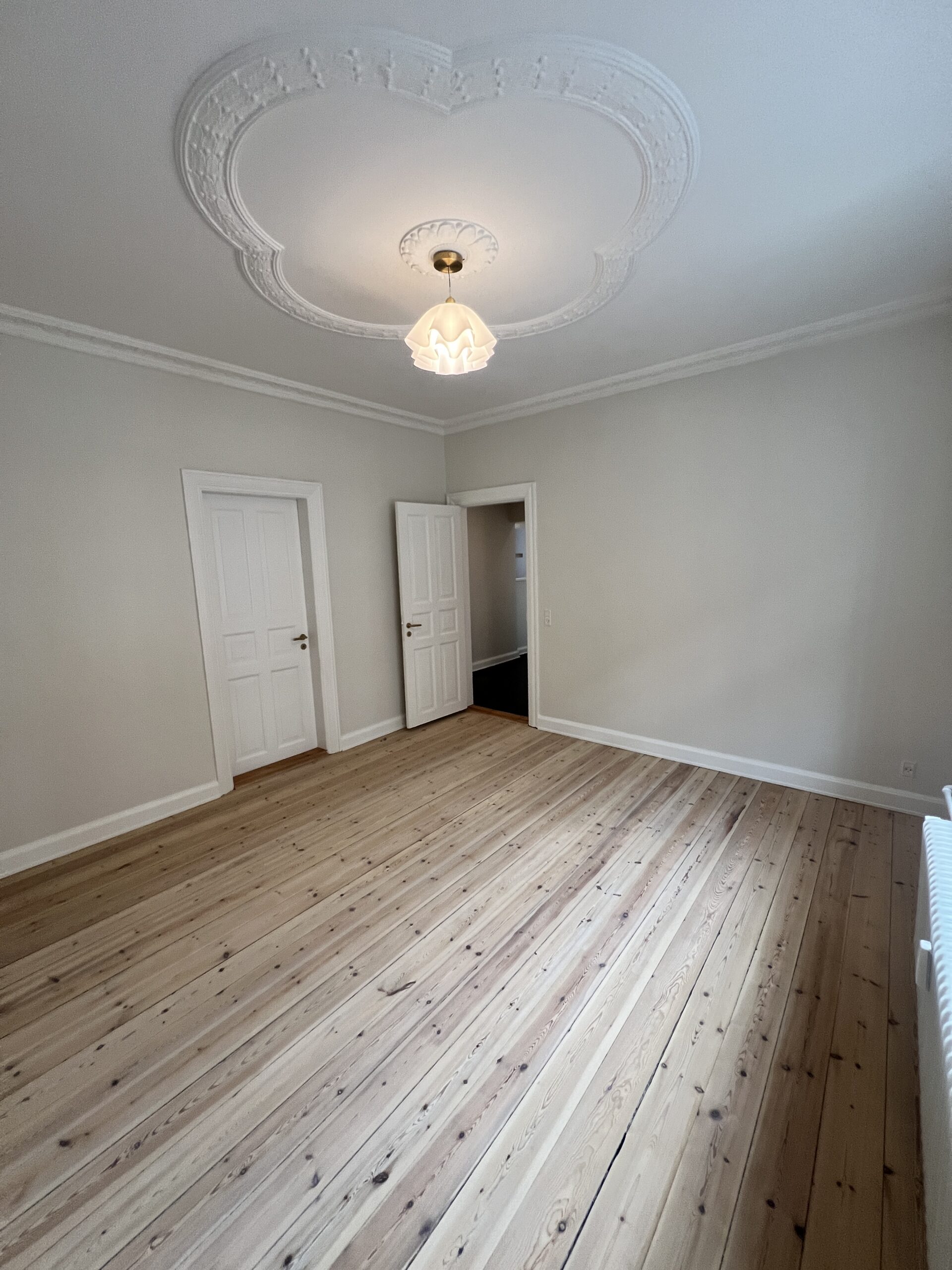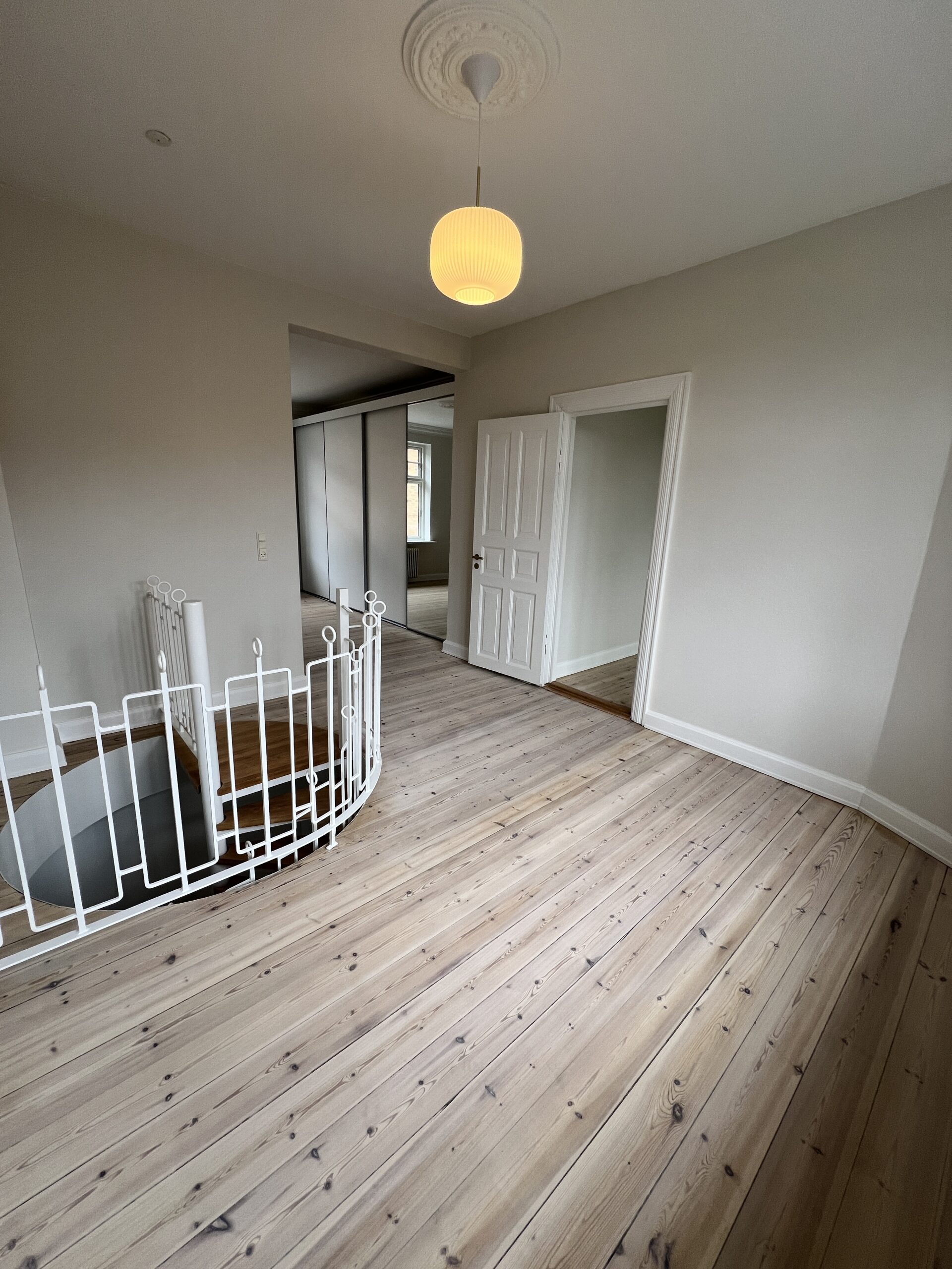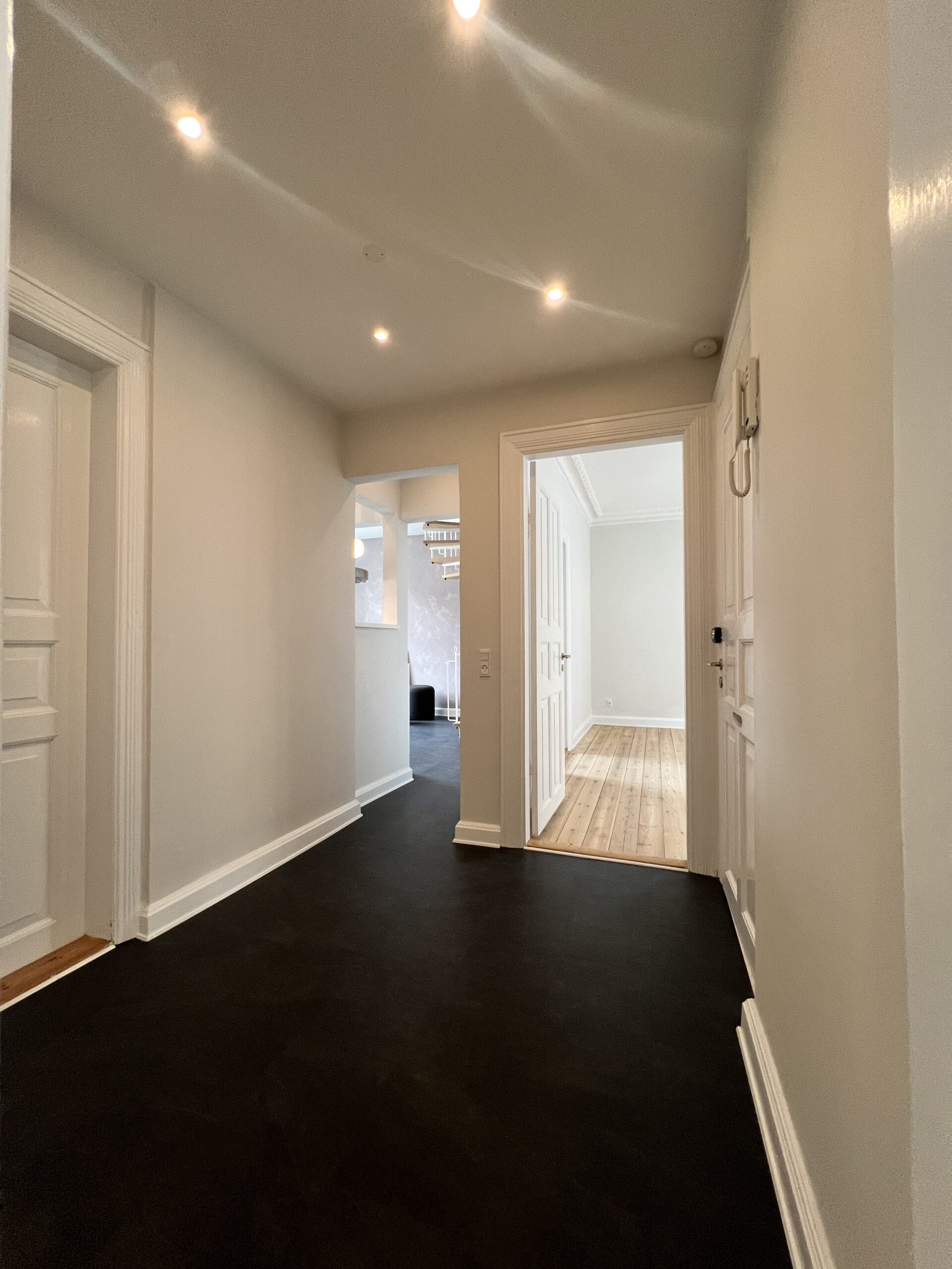 Denne smukke lejlighed er nyistandsat med sans for både æstetik og funktionalitet. Med 164 m², 5 store værelser og en privat terrasse, er boligen ideel til både den kvalitetsbevidste familie, det professionelle par med behov for hjemmekontor – eller en gruppe studerende, der ønsker en rummelig delebolig i høj standard.