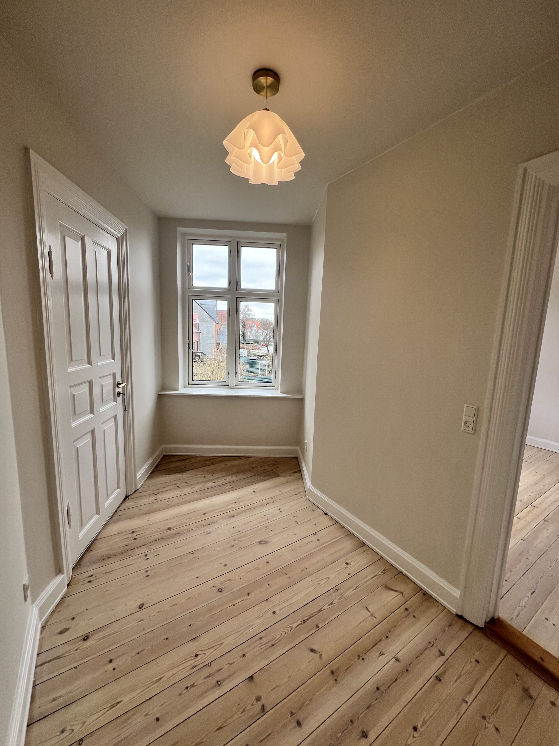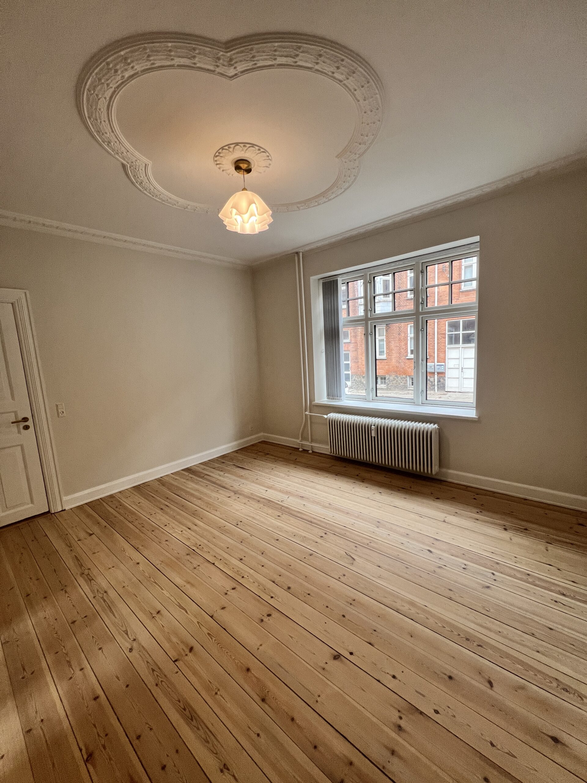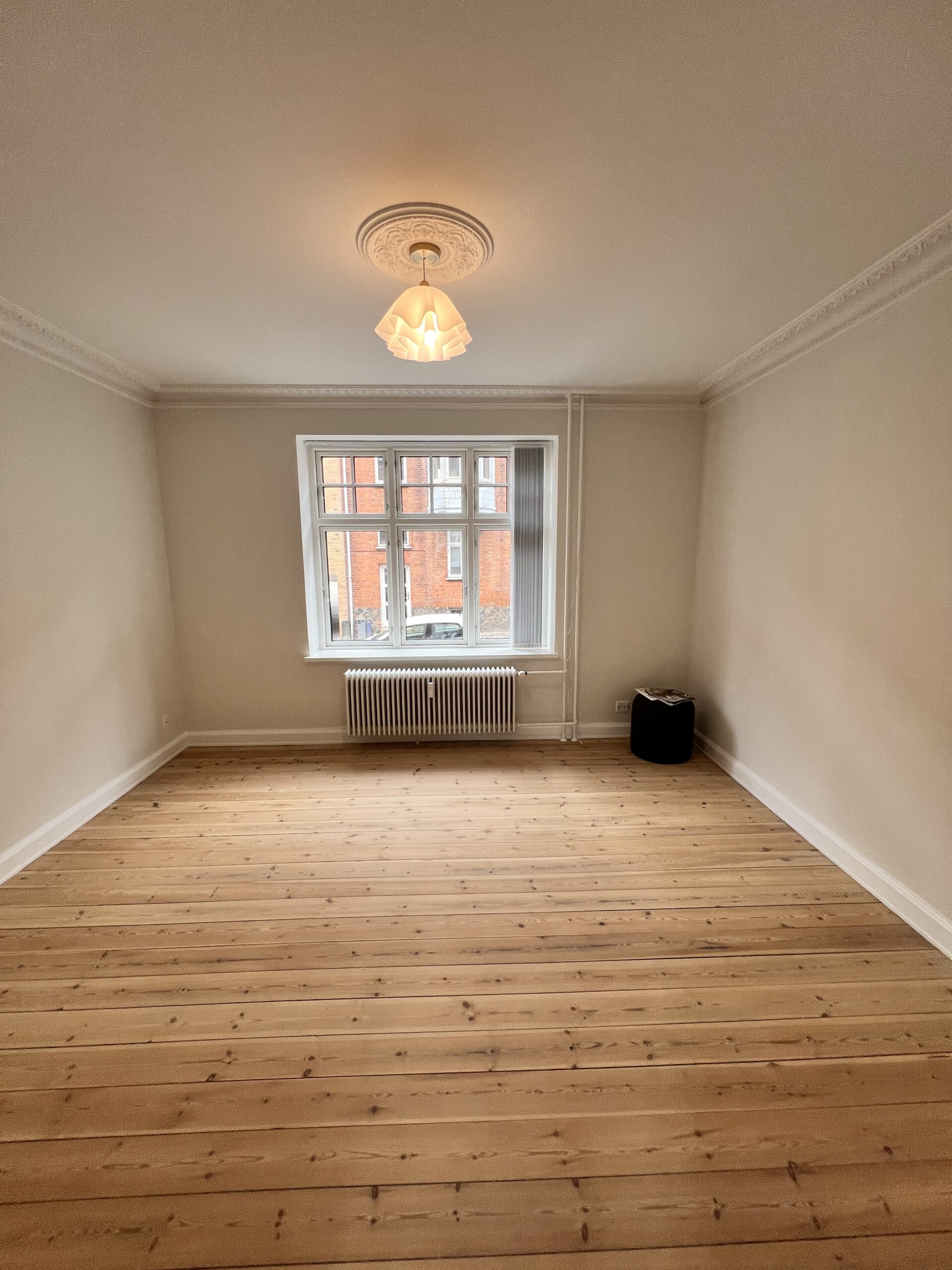 Denne smukke lejlighed er nyistandsat med sans for både æstetik og funktionalitet. Med 164 m², 5 store værelser og en privat terrasse, er boligen ideel til både den kvalitetsbevidste familie, det professionelle par med behov for hjemmekontor – eller en gruppe studerende, der ønsker en rummelig delebolig i høj standard.